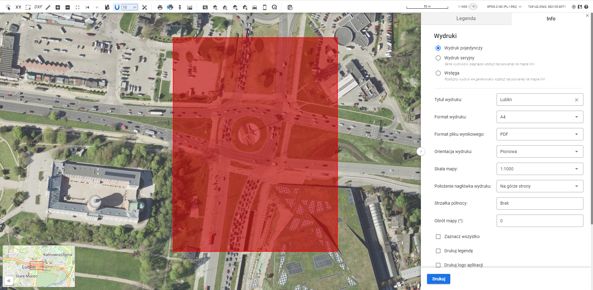 2. For printing, it is recommended to configure the Administration Panel to generate prints in a projected (flat rectangular) coordinate system. Due to scale distortions, printing in EPSG:3857 is not recommended.
