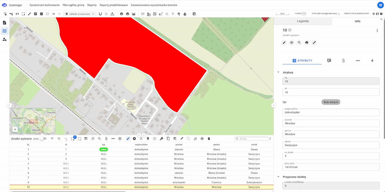Zmiana geometrii obiektu tj. wstawienie i modyfikowanie wierzchołków jest możliwe, dzięki korzystaniu z narzędzia Zmień geometrię