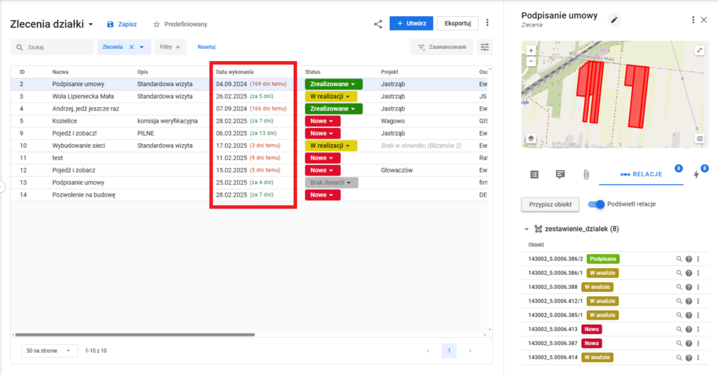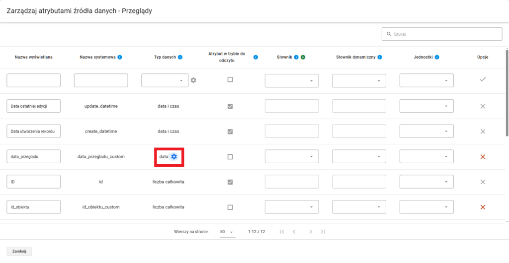 Jeśli w tabeli atrybutów znajduje się pole typu data, można skorzystać z ustawień atrybutu (dostępnych poprzez ikonę zębatki) i zaznaczyć opcję „Pokaż dni od/do daty”. Po jej aktywacji system automatycznie obliczy liczbę dni, które upłynęły od podanej daty lub pozostały do jej osiągnięcia.
