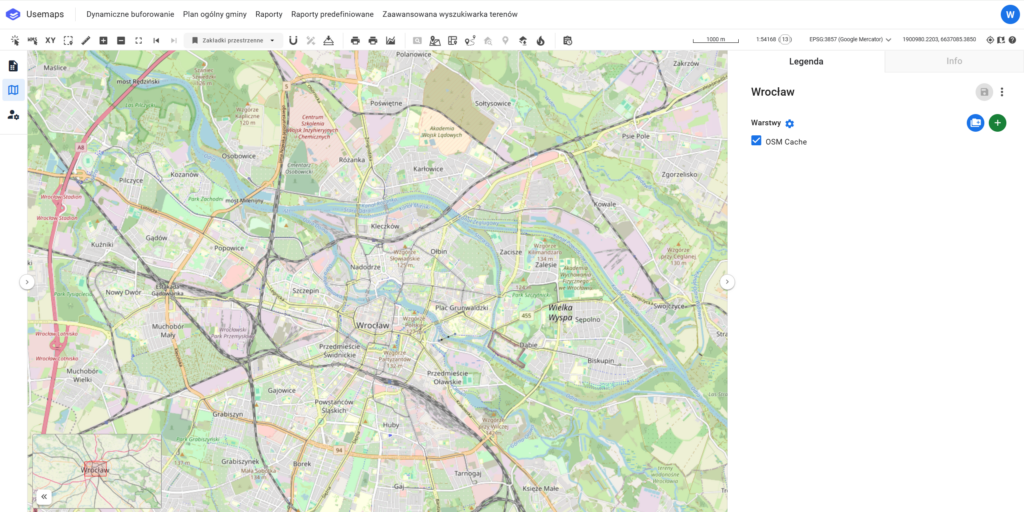 Domyślnie używana jest ogólnodostępna warstwa OpenStreetMap. Aby zwiększyć wydajność i przyspieszyć działanie, wprowadzono usługę OpenStreetMap Cache – buforowanie kafelków. Obrazy są zapisywane w pamięci podręcznej, co umożliwia szybsze wyświetlanie map.